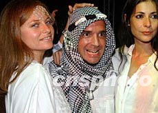 一名阿拉伯人與模特和經紀人一起激動拍照