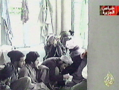 9月9日,卡塔爾半島電視臺播放了一段錄像片。該電視臺稱,錄像中的畫面很像是基地組織為“9-11”恐怖襲擊事件推出的“周年紀(jì)念”,其中有恐怖分子練習(xí)操作飛機(jī)的鏡頭。在錄像中,拉登念到4名“9-11”事件劫機(jī)犯的名字,表明基地組織應(yīng)對“9-11”事件負(fù)責(zé)。