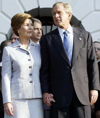 圖:布什夫婦前往教堂開始"9.11"紀(jì)念日程