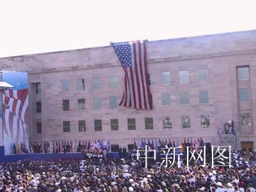 美國(guó)政府在國(guó)防部五角大樓舉行“九·一一”事件一周年紀(jì)念儀式。中新社記者 余東暉 攝