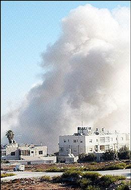 圍困巴勒斯坦民族權(quán)力機構(gòu)主席阿拉法特官邸的以軍部隊,20日深夜向阿拉法特在拉姆安拉的總統(tǒng)官邸的私人辦公大樓發(fā)射了一枚炮彈,阿拉法特當時正在大樓內(nèi),但沒有受傷。
