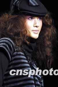 國際知名服裝品牌I.T在中國的旗艦店二十七日正式登陸上海,并于當晚在滬舉行2002秋冬時裝發(fā)布會。圖為模特在展示I.T2002秋冬新款時裝。作者:湯彥俊