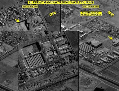 10月8日,美國政府7日公布了兩張衛(wèi)星照片,稱上面顯示了伊拉克 正在重建大規(guī)模殺傷性武器的制造設(shè)施。