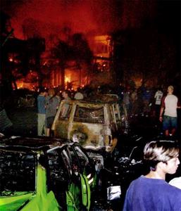 直到周日凌晨,在上述夜總會的現(xiàn)場仍然是濃煙滾滾,直沖云宵,與此同時警察及救援人員將受傷者和遇難者抬離現(xiàn)場,其中一些傷者還在痛苦地呻吟著。警方稱,預(yù)計還有一些傷者被埋在廢墟下面。巴厘島警方發(fā)言人亞蒂姆-蘇亞特姆表示,警方認為所有的爆炸設(shè)備均為自制炸彈。