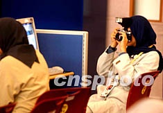 圖:西亞女記者在亞運(yùn)新聞中心留影