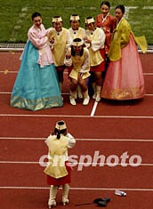 參加釜山亞運(yùn)會閉幕式表演的韓國美女和女學(xué)生們照相留念。作者:賈國榮