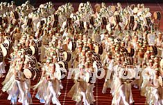 十月十四日舉行的韓國釜山亞運會閉幕式上,數(shù)百名鼓手演繹歸鄉(xiāng)情結(jié)。作者:潘索菲