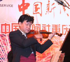 中新社重慶十月十八日電(記者 鄒輝)重慶萬(wàn)豪酒店宴會(huì)廳今晚高朋滿座,中國(guó)新聞社在這里隆重舉行建社五十周年慶典。著名小提琴演奏家盛中國(guó)、鋼琴演奏家瀨田裕子夫婦受邀在此間舉行了一場(chǎng)名曲演奏會(huì),慶祝中新社五十華誕。