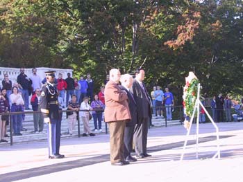 今天,在阿靈頓國家公墓,朗朗晴空下,一群白發(fā)蒼蒼的耄耋老人,一群當(dāng)年在反法西斯戰(zhàn)爭中并肩作戰(zhàn)的中美老兵們,向犧牲的戰(zhàn)友們獻(xiàn)上了花圈。不遠(yuǎn)處是“二戰(zhàn)”中犧牲的美軍官兵的墓碑,更遠(yuǎn)處是“九一一”中遭受恐怖襲擊的五角大樓。明媚的秋日中,人們神情肅穆,祈求安寧與和平。