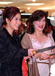 浪琴表亞洲形象大使劉嘉玲、浪琴表中國及香港地區(qū)總裁麥姬麗(右)十九日在北京當代商城為“浪琴”一百七十周年慶典巡展揭幕。作者:鄭萍萍