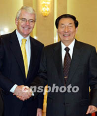 朱镕基二十二日在北京會見前來出席全球工商領(lǐng)導(dǎo)人會議的英國前首相梅杰。毛建軍 攝
