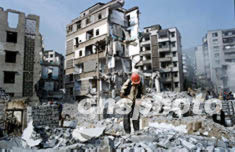 三峽導流明渠截流在即,重慶奉節(jié)舊縣城四十多棟高樓,在陣陣炮聲中夷為平地,僅一個秋季就拆除清理了一百一十八萬平方米的舊樓盤。作者:李中全
