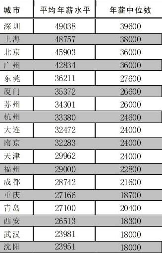 據(jù)中國(guó)青年報(bào)報(bào)道,上海、北京、廣州的薪資水平分別以48757元、45903元、42834元位列其后,相對(duì)上期下降了1000元。