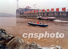 “金山4號”駛出導流明渠入口,頓時五彩氣球放飛起來,正在截流的施工車和“金山4號”都拉響了汽笛,聲震峽江兩岸,有著5年航運史的三峽導流明渠從此永遠封航。截流后,將在它上面崛起三峽工程的右岸大壩。