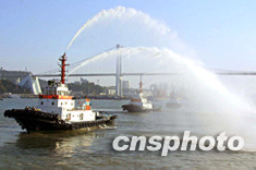 廈門港日前舉行海上消防演練,出動六艘全回轉(zhuǎn)拖輪在海天碼頭海域進行搶險應(yīng)急演練。作者:鄭憲