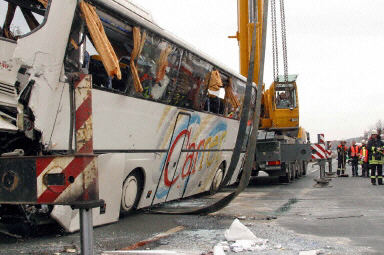 中新網(wǎng)11月7日電 一輛載有22名香港旅客的旅游巴士,在德國開往意大利途中,在德國南部巴伐利亞州的A3高速公路上,被另一輛載有美國人的旅游巴士從后面碰撞,車身嚴重損毀。香港旅游團中有11名旅客受傷,其中2人傷勢較重,幸無生命危險。美國人則有12人受輕微割傷或撞傷。
