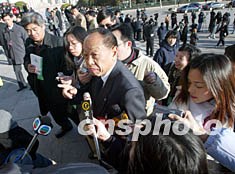 中國知名外交家李肇星作為中共十六大黨代表,在北京受到中外媒體記者的圍追采訪。作者:賈國榮