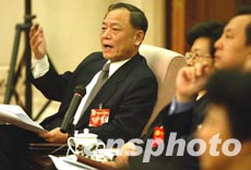 十六大代表、首都鋼鐵集團(tuán)董事長(zhǎng)羅冰生在中共十六大北京代表團(tuán)分組會(huì)上暢言國(guó)企改革。作者:毛建軍