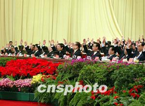 大會一致同意把“三個代表”重要思想與馬克思列寧主義、毛澤東思想、鄧小平理論一道確立為我們黨的指導思想。