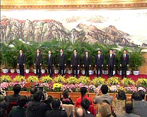 中新網(wǎng)11月15日電(記者 張朔)在剛剛結(jié)束的中國共產(chǎn)黨十六屆一中全會上,胡錦濤、吳邦國、溫家寶、賈慶林、曾慶紅、黃菊、吳官正、李長春、羅干等九人當選為新一屆中共中央政治局常委。