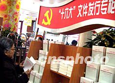 十九日上午九時,加急印刷出來的“十六大”報告單行本在北京各大新華書店同步上市,北京市民紛紛購書。作者:廖文靜