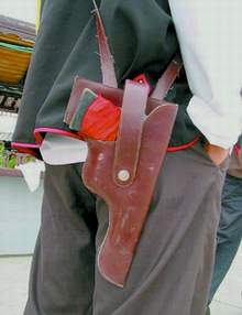據(jù)信息時報報道,頭戴一頂禮帽,上穿絲綢馬夾,下穿寬大褲頭,屁股上還掛著一把木制“駁殼槍”,點頭哈腰,遇見客人無論男女均叫“大爺”,保安胳膊上還戴著一個寫有“廣州市治安協(xié)管員”的黃色袖章!@京是花都區(qū)云海閣酒樓10多名保安的形象。