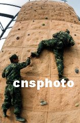 解放軍某野戰(zhàn)通信團(tuán),日前組織官兵進(jìn)行攀巖訓(xùn)練。該團(tuán)已將膽識和心理素質(zhì)訓(xùn)練作為2002年冬季訓(xùn)練的重要科目。