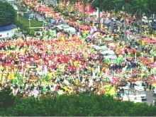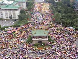 雖然有些縣市人數(shù)減少,但因地緣關(guān)系,北縣人數(shù)反而增加,從近午開始,中正紀(jì)念堂就開始人滿為患,從高處俯瞰,只見到黑壓壓一片,十分驚人。而國民黨主席連戰(zhàn)也在午后1時,抵達(dá)現(xiàn)場向農(nóng)漁民“致意”。