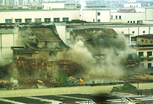 據(jù)悉,此次爆破拆除的武漢卷煙廠鍋爐房,高21.2米,建筑面積4500平方米,共埋設(shè)炸藥320公斤。武漢爆破公司利用鍋爐房內(nèi)3個總?cè)莘e達(dá)70立方米的煤斗,封閉成“水池”,各層樓面也“筑”成蓄水池。池水中設(shè)藥包,利用水的不可壓縮性,在爆破瞬間形成“高速霧化的水幕”,捕捉粉塵。隨著一聲巨響,鍋爐房頹然倒下,爆破后騰起的不是遮天灰幕,而是一團(tuán)“白霧”,約5分鐘就散盡了。