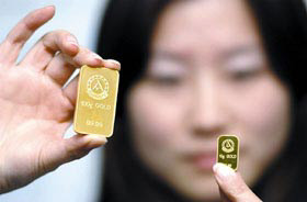 在黃金交易所的交易中,黃金只是抽象的概念,按成色、價(jià)格和當(dāng)日行情成交,品牌根本沒有什么意義。世界黃金協(xié)會(huì)中國區(qū)經(jīng)理王立新昨天向記者表示,金礦企業(yè)打出黃金品牌的意義主要是看好中國的個(gè)人投資市場,即用于個(gè)人收藏和投資的金磚、金條。我國今年前三季度金飾需求145.6噸,投資產(chǎn)品需求僅為0.9噸,因此用于投資的金磚、金條市場潛力很大。一旦放開市場,準(zhǔn)許個(gè)人投資黃金,那么有信譽(yù)保證的品牌黃金就能在市場上掘得第一桶金。中國黃金協(xié)會(huì)副秘書長許守信稱,由于中國一直不允許個(gè)人持有黃金,民間需求相當(dāng)強(qiáng)勁,因此一旦政策松動(dòng),一年的投資黃金需求量估計(jì)能達(dá)到100噸,這對每個(gè)黃金生產(chǎn)企業(yè)都有吸引力,品牌黃金則可以搶到市場先機(jī)。