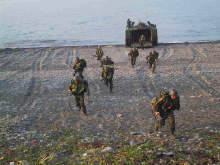 5日清晨,聯(lián)興88號操演地點,海象相當(dāng)良好,風(fēng)平浪靜,操演正式下達(dá)命令后,只見海軍兩棲登艦艇,在空軍戰(zhàn)斗機(jī)及陸軍攻擊直升機(jī)掩護(hù)下,載運包括戰(zhàn)車、捍馬車等車輛及海軍陸戰(zhàn)隊官兵弟兄們,發(fā)動5、6波搶灘登陸,與岸上反登陸部隊發(fā)生激戰(zhàn),在完成消滅岸上反登陸部隊及清除岸上地雷后,順利搶灘登陸成功。