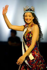 2002世界小姐頭戴皇冠揮手慶祝勝利