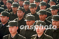 解放軍各部隊的新兵目前已陸續(xù)到達部隊,正在接受兩個月的新兵訓練。圖為解放軍某通信部隊新兵冒嚴寒訓練。作者:宋吉河