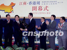由香港特別行政區(qū)政府和江蘇省人民政府?dāng)y手舉辦的“江蘇·香港周”9日上午在南京國際展覽中心隆重開幕,香港展覽會(huì)亦同期拉開帷幕。香港工商及科技局局長唐英年與江蘇省副省長梁寶華共同為開幕式剪彩。作者:丁東升