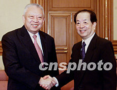 國(guó)務(wù)院副總理錢(qián)其琛十日在北京會(huì)見(jiàn)前來(lái)述職的香港特別行政區(qū)行政長(zhǎng)官董建華。作者:鄭萍萍