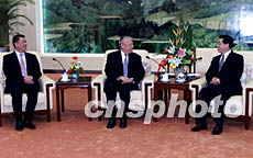 今天下午,大會(huì)堂福建廳內(nèi),燈火通明。三時(shí),國(guó)家副主席胡錦濤在這里會(huì)見了香港特別行政區(qū)行政長(zhǎng)官董建華和澳門特別行政區(qū)行政長(zhǎng)官何厚鏵。