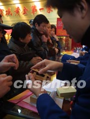 中新網(wǎng)12月19日電 今天,眾多消費(fèi)者翹首企盼的投資型黃金產(chǎn)品正式開始銷售。在世界局勢(shì)不穩(wěn)、黃金交易價(jià)格節(jié)節(jié)上漲之際,投資型黃金產(chǎn)品的面世很可能將引發(fā)購(gòu)金熱潮。