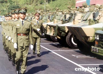 中國人民解放軍駐澳門部隊(duì)的裝甲機(jī)動分隊(duì)軍容嚴(yán)整。作者:中新社