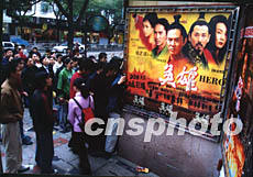 由張藝謀執(zhí)導(dǎo)的武俠巨片《英雄》二十日在福州上映。影片開映前,電影院門口排起了長(zhǎng)長(zhǎng)的購(gòu)票隊(duì)伍。作者:鄭祚聲