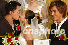 香港旅游發(fā)展局十二月二十日在“香港繽紛冬日節(jié)”,歌星任賢齊為來自中國華東及華南地區(qū)的七十五對有情人證婚。錢興強 攝