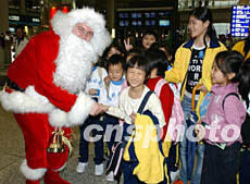 香港機(jī)場為營造圣誕節(jié)日氣氛,十二月二十日推出圣誕老人與旅客同樂活動,成為香港機(jī)場一道節(jié)日風(fēng)景。潘索菲 攝