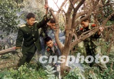 重慶市奉節(jié)縣十二月組織人員砍伐三峽庫區(qū)內(nèi)的廣柑林,以在既定時(shí)間內(nèi)完成三峽庫底清理任務(wù)。作者:李中全