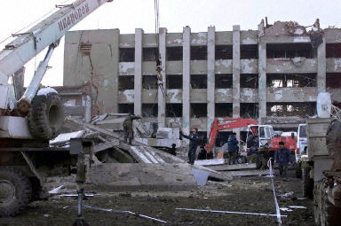 12月27日,車臣首府格羅茲尼的政府大樓接連發(fā)生兩起自殺汽車炸彈爆炸事件,造成至少57人死亡,120人受傷,大樓受到嚴重的損毀。