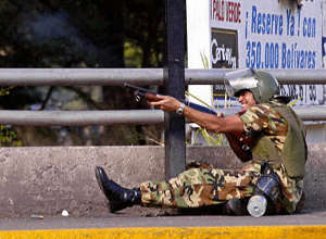 在混亂之中,身份不明的槍手向總統(tǒng)的反對者開槍射擊,至少造成兩人死亡。據(jù)報道,這場由反對派領導的旨在把查韋斯趕下臺的抗議活動已經(jīng)整整持續(xù)了一個月。
