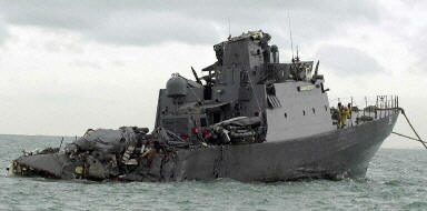 國(guó)防部說,意外發(fā)生時(shí),4名受困女兵是在軍艦尾端的女兵臥艙內(nèi),這是受猛撞最嚴(yán)重的部分,當(dāng)局直今仍未能確定她們受困的位置。