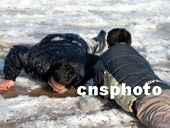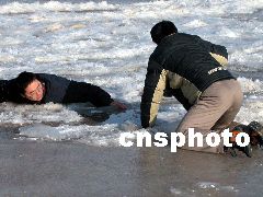 濟(jì)南一市民3日到洛口觀賞黃河封河奇觀,結(jié)果不甚落入冰窟,幸虧同伴機智向救,才僥幸生還。3日,黃河出現(xiàn)了歷史上少有的大范圍封河現(xiàn)象,許多市民聞訊前來目睹這一奇觀。河務(wù)部門提醒市民,雖然黃河已經(jīng)冰封,但有些河面上冰層較薄,千萬不要在上面行走。