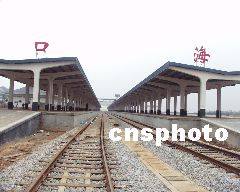 中國第一條跨海鐵路粵海鐵路將于一月七日正式開通。屆時?谟惺芬詠淼牡谝粋火車站海口站也將投入運營。圖為?诨疖囌净疖囃ǖ勒究谝痪。王辛莉 攝