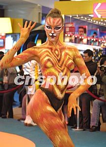 圖:人體彩繪表演為亞洲信息技術(shù)展助陣