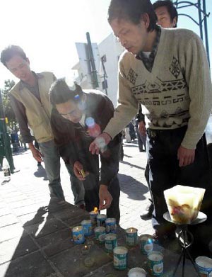 圖:中國工人悼念以自殺性爆炸中遇難同胞