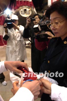 一月八日上午,“神舟”四號飛船返回艙開艙儀式在中國空間技術(shù)研究院舉行,北京公證處的公證員對剛剛?cè)〕龅娘w船搭載物進行公證。作者:張煒
